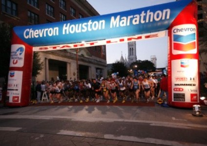 The temperature was perfect and the sun was shining on the runners under the skyscrapers in Houston, Texas today.